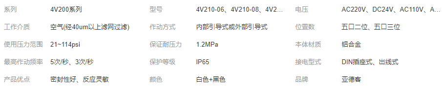 您所在的位置:全球零部件網(wǎng)>產(chǎn)品供應>電動工具>液壓系統(tǒng)>電磁閥>原裝AirTAC電磁閥4V210一08亞德客4V210-06二位五通4V220-08/06