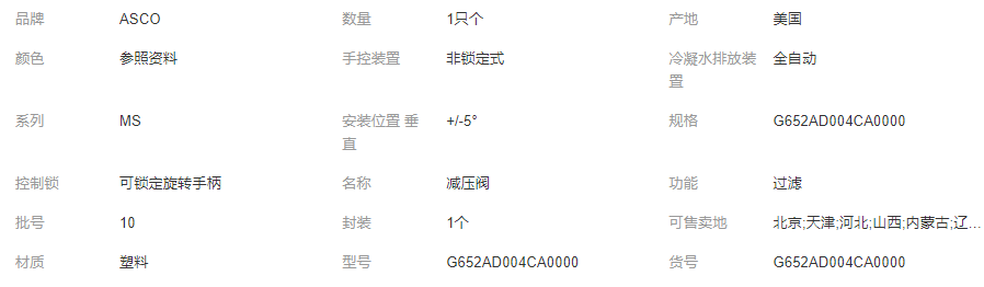 紐曼蒂克numatics/asco過(guò)濾減壓閥G652AD004CA0000使用簡(jiǎn)單