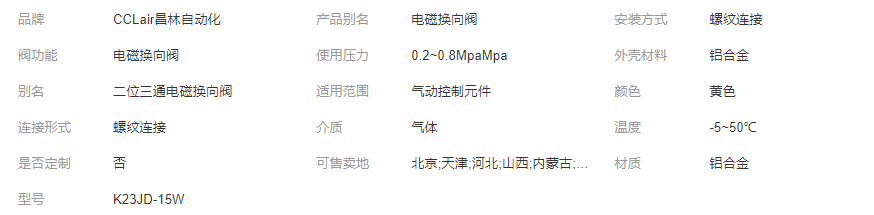 本網(wǎng)頁所展示的有關(guān)【二位三通電磁閥K23JD-8W,K23JD-10W,K23JD-15W,K23JD-20/25W,_電磁閥_無錫市昌林自動(dòng)化科技有限公司】的信息/圖片/參數(shù)等由全球零部件網(wǎng)的會(huì)員【無錫市昌林自動(dòng)化科技有限公司】提供,由全球零部件網(wǎng)會(huì)員【無錫市昌林自動(dòng)化科技有限公司】自行對信息/圖片/參數(shù)等的真實(shí)性、準(zhǔn)確性和合法性負(fù)責(zé),本平臺(本網(wǎng)站)僅提供展示服務(wù),請謹(jǐn)慎交易,因交易而產(chǎn)生的法律關(guān)系及法律糾紛由您自行協(xié)商解決,本平臺(本網(wǎng)站)對此不承擔(dān)任何責(zé)任。您在本網(wǎng)頁可以瀏覽【二位三通電磁閥K23JD-8W,K23JD-10W,K23JD-15W,K23JD-20/25W,_電磁閥_無錫市昌林自動(dòng)化科技有限公司】有關(guān)的信息/圖片/價(jià)格等及提供【二位三通電磁閥K23JD-8W,K23JD-10W,K23JD-15W,K23JD-20/25W,_電磁閥_無錫市昌林自動(dòng)化科技有限公司】的商家公司簡介、聯(lián)系方式等信息。