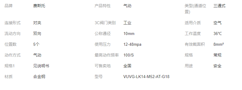 您所在的位置:全球零部件網(wǎng)>產(chǎn)品供應(yīng)>電動(dòng)工具>液壓系統(tǒng)>電磁閥>FESTO費(fèi)斯托原裝電磁閥VUVG-LK10-M52-AT-M5-1H2L-S訂貨號(hào)8042539