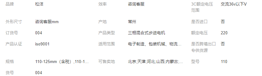 >產(chǎn)品供應(yīng)>家電行業(yè)>電機(jī)>松洋110仿伺服混合式步進(jìn)電機(jī)低壓大力矩開環(huán)馬達(dá)220V驅(qū)動(dòng)廠家售 電機(jī)、機(jī)械零部件的開發(fā)、制造和銷售。(依法須經(jīng)批準(zhǔn)的項(xiàng)目,經(jīng)相關(guān)部門批準(zhǔn)后方可開展經(jīng)營(yíng)活動(dòng))