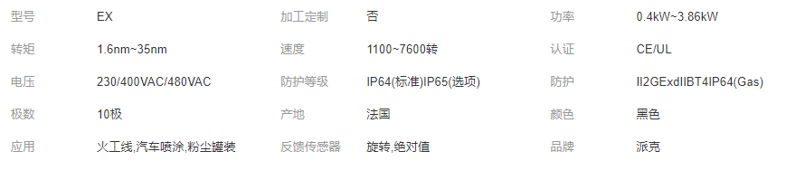 您所在的位置:全球零部件網(wǎng)>產(chǎn)品供應(yīng)>家電行業(yè)>電機(jī)>派克EX防爆伺服電機(jī)II2GD Ex d IIB T4證書齊全CCC