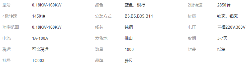 藤尺三相異步電動機(jī)大功率0.18KW-160KW原廠發(fā)貨