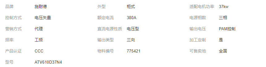 立即發(fā)布求購意向本網(wǎng)頁所展示的有關【Schneider重載變頻器ATV610D37N4控制電源(37kw)施耐德_變頻器_浙江馳圣電氣設備有限公司】的信息/圖片/參數(shù)等由全球零部件網(wǎng)的會員【浙江馳圣電氣設備有限公司】提供,由全球零部件網(wǎng)會員【浙江馳圣電氣設備有限公司】自行對信息/圖片/參數(shù)等的真實性、準確性和合法性負責,本平臺(本網(wǎng)站)僅提供展示服務,請謹慎交易,因交易而產(chǎn)生的法律關系及法律糾紛由您自行協(xié)商解決,本平臺(本網(wǎng)站)對此不承擔任何責任。您在本網(wǎng)頁可以瀏覽【Schneider重載變頻器ATV610D37N4控制電源(37kw)施耐德_變頻器_浙江馳圣電氣設備有限公司】有關的信息/圖片/價格等及提供【Schneider重載變頻器ATV610D37N4控制電源(37kw)施耐德_變頻器_浙江馳圣電氣設備有限公司】的商家公司簡介、聯(lián)系方式等信息。