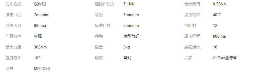 立即發(fā)布求購意向本網(wǎng)頁所展示的有關(guān)【AIRTAC亞德客MI迷你氣缸MI32/40X25X50X75X100X125X150X200SCA_氣缸_江西鵬一電氣有限公司】的信息/圖片/參數(shù)等由全球零部件網(wǎng)的會員【江西鵬一電氣有限公司】提供,由全球零部件網(wǎng)會員【江西鵬一電氣有限公司】自行對信息/圖片/參數(shù)等的真實性、準(zhǔn)確性和合法性負(fù)責(zé),本平臺(本網(wǎng)站)僅提供展示服務(wù),請謹(jǐn)慎交易,因交易而產(chǎn)生的法律關(guān)系及法律糾紛由您自行協(xié)商解決,本平臺(本網(wǎng)站)對此不承擔(dān)任何責(zé)任。您在本網(wǎng)頁可以瀏覽【AIRTAC亞德客MI迷你氣缸MI32/40X25X50X75X100X125X150X200SCA_氣缸_江西鵬一電氣有限公司】有關(guān)的信息/圖片/價格等及提供【AIRTAC亞德客MI迷你氣缸MI32/40X25X50X75X100X125X150X200SCA_氣缸_江西鵬一電氣有限公司】的商家公司簡介、聯(lián)系方式等信息。