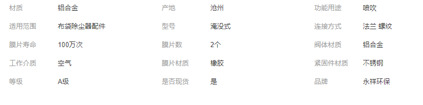 本網(wǎng)頁所展示的有關(guān)【除塵器電磁脈沖閥袋配直角淹沒式速聯(lián)防爆閥高原型線圈膜片閥_閥門_泊頭市永祥環(huán)保設備有限公司】的信息/圖片/參數(shù)等由全球零部件網(wǎng)的會員【泊頭市永祥環(huán)保設備有限公司】提供,由全球零部件網(wǎng)會員【泊頭市永祥環(huán)保設備有限公司】自行對信息/圖片/參數(shù)等的真實性、準確性和合法性負責,本平臺(本網(wǎng)站)僅提供展示服務,請謹慎交易,因交易而產(chǎn)生的法律關(guān)系及法律糾紛由您自行協(xié)商解決,本平臺(本網(wǎng)站)對此不承擔任何責任。您在本網(wǎng)頁可以瀏覽【除塵器電磁脈沖閥袋配直角淹沒式速聯(lián)防爆閥高原型線圈膜片閥_閥門_泊頭市永祥環(huán)保設備有限公司】有關(guān)的信息/圖片/價格等及提供【除塵器電磁脈沖閥袋配直角淹沒式速聯(lián)防爆閥高原型線圈膜片閥_閥門_泊頭市永祥環(huán)保設備有限公司】的商家公司簡介、聯(lián)系方式等信息。