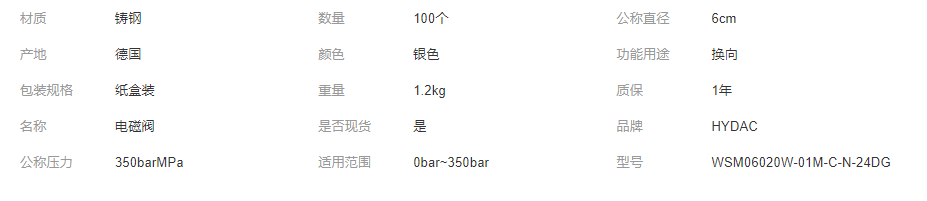 德國(guó)WSM06020W-01M-C-N-24DG液壓電磁閥,賀德克HYDAC,當(dāng)天發(fā)貨