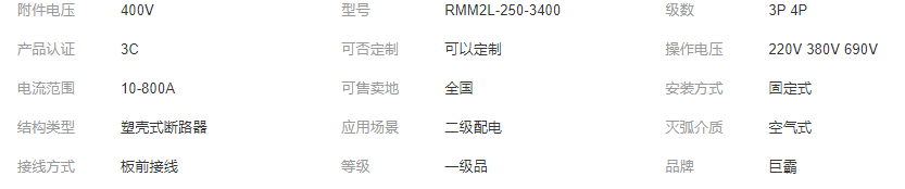 立即發(fā)布求購意向本網(wǎng)頁所展示的有關(guān)【人民電器廠漏電塑殼斷路器RMM2L-250-3400 bse250 100A 160A 400A_斷路器_浙江巨霸電氣有限公司】的信息/圖片/參數(shù)等由全球零部件網(wǎng)的會員【浙江巨霸電氣有限公司】提供,由全球零部件網(wǎng)會員【浙江巨霸電氣有限公司】自行對信息/圖片/參數(shù)等的真實性、準確性和合法性負責,本平臺(本網(wǎng)站)僅提供展示服務,請謹慎交易,因交易而產(chǎn)生的法律關(guān)系及法律糾紛由您自行協(xié)商解決,本平臺(本網(wǎng)站)對此不承擔任何責任。您在本網(wǎng)頁可以瀏覽【人民電器廠漏電塑殼斷路器RMM2L-250-3400 bse250 100A 160A 400A_斷路器_浙江巨霸電氣有限公司】有關(guān)的信息/圖片/價格等及提供【人民電器廠漏電塑殼斷路器RMM2L-250-3400 bse250 100A 160A 400A_斷路器_浙江巨霸電氣有限公司】的商家公司簡介、聯(lián)系方式等信息。