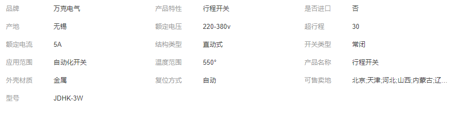 立即發(fā)布求購意向本網(wǎng)頁所展示的有關(guān)【萬克電氣 萬向彈簧型行程開關(guān)JDHK-3W 耐高溫限位開關(guān)_電源開關(guān)及按鈕_無錫萬克電氣有限公司】的信息/圖片/參數(shù)等由全球零部件網(wǎng)的會員【無錫萬克電氣有限公司】提供,由全球零部件網(wǎng)會員【無錫萬克電氣有限公司】自行對信息/圖片/參數(shù)等的真實性、準確性和合法性負責,本平臺(本網(wǎng)站)僅提供展示服務(wù),請謹慎交易,因交易而產(chǎn)生的法律關(guān)系及法律糾紛由您自行協(xié)商解決,本平臺(本網(wǎng)站)對此不承擔任何責任。您在本網(wǎng)頁可以瀏覽【萬克電氣 萬向彈簧型行程開關(guān)JDHK-3W 耐高溫限位開關(guān)_電源開關(guān)及按鈕_無錫萬克電氣有限公司】有關(guān)的信息/圖片/價格等及提供【萬克電氣 萬向彈簧型行程開關(guān)JDHK-3W 耐高溫限位開關(guān)_電源開關(guān)及按鈕_無錫萬克電氣有限公司】的商家公司簡介、聯(lián)系方式等信息。