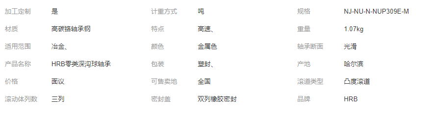 您所在的位置:全球零部件網(wǎng)>產(chǎn)品供應(yīng)>家電行業(yè)>軸承>深溝球軸承>HRB零類深溝球軸承 軸向承載能力高 NJ-NU-N-NUP309E-M 型號可選