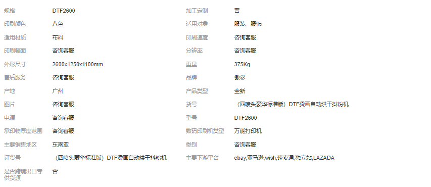 立即發(fā)布求購意向本網(wǎng)頁所展示的有關(guān)【廠家四噴頭dtf數(shù)碼抖粉機(jī)白墨燙畫膜豪華版自動(dòng)抖粉烘干機(jī)撒粉機(jī)_印刷器材_廣州市傲彩數(shù)碼科技有限公司】的信息/圖片/參數(shù)等由全球零部件網(wǎng)的會(huì)員【廣州市傲彩數(shù)碼科技有限公司】提供,由全球零部件網(wǎng)會(huì)員【廣州市傲彩數(shù)碼科技有限公司】自行對(duì)信息/圖片/參數(shù)等的真實(shí)性、準(zhǔn)確性和合法性負(fù)責(zé),本平臺(tái)(本網(wǎng)站)僅提供展示服務(wù),請(qǐng)謹(jǐn)慎交易,因交易而產(chǎn)生的法律關(guān)系及法律糾紛由您自行協(xié)商解決,本平臺(tái)(本網(wǎng)站)對(duì)此不承擔(dān)任何責(zé)任。您在本網(wǎng)頁可以瀏覽【廠家四噴頭dtf數(shù)碼抖粉機(jī)白墨燙畫膜豪華版自動(dòng)抖粉烘干機(jī)撒粉機(jī)_印刷器材_廣州市傲彩數(shù)碼科技有限公司】有關(guān)的信息/圖片/價(jià)格等及提供【廠家四噴頭dtf數(shù)碼抖粉機(jī)白墨燙畫膜豪華版自動(dòng)抖粉烘干機(jī)撒粉機(jī)_印刷器材_廣州市傲彩數(shù)碼科技有限公司】的商家公司簡介、聯(lián)系方式等信息。