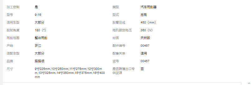 立即發(fā)布求購意向本網(wǎng)頁所展示的有關【多功能后雨刮片雨刮器 汽車通用無骨雨刷器 有骨后雨刷器雨刷片_ HVAC汽車_清河縣忠陽汽車零部件有限公司】的信息/圖片/參數(shù)等由全球零部件網(wǎng)的會員【清河縣忠陽汽車零部件有限公司】提供,由全球零部件網(wǎng)會員【清河縣忠陽汽車零部件有限公司】自行對信息/圖片/參數(shù)等的真實性、準確性和合法性負責,本平臺(本網(wǎng)站)僅提供展示服務,請謹慎交易,因交易而產(chǎn)生的法律關系及法律糾紛由您自行協(xié)商解決,本平臺(本網(wǎng)站)對此不承擔任何責任。您在本網(wǎng)頁可以瀏覽【多功能后雨刮片雨刮器 汽車通用無骨雨刷器 有骨后雨刷器雨刷片_ HVAC汽車_清河縣忠陽汽車零部件有限公司】有關的信息/圖片/價格等及提供【多功能后雨刮片雨刮器 汽車通用無骨雨刷器 有骨后雨刷器雨刷片_ HVAC汽車_清河縣忠陽汽車零部件有限公司】的商家公司簡介、聯(lián)系方式等信息。