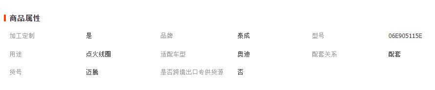 >產品供應> HVAC汽車>發(fā)動機系統(tǒng)>點火線圈>適用奧迪點火線圈 06E905115E 07K905715D 07K905715F 06E905115G 主營 一般項目:汽車零配件零售;汽車零配件批發(fā);汽車裝飾用品銷售
