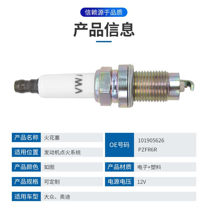 >產(chǎn)品供應(yīng)> HVAC汽車>發(fā)動(dòng)機(jī)系統(tǒng)>火花塞>汽車火花塞適用于大眾/奧迪/斯柯達(dá) 銥金火花塞101905626 PZFR6R 主營(yíng) 汽車零配件零售 汽車零配件批發(fā)