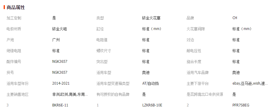 >產(chǎn)品供應(yīng)> HVAC汽車(chē)>發(fā)動(dòng)機(jī)系統(tǒng)>火花塞>3657適用于NGK3657 奧迪 工廠(chǎng)直銷(xiāo)高品質(zhì)銥金火花塞IZKR5K11 主營(yíng) 國(guó)內(nèi)貿(mào)易代理 貿(mào)易經(jīng)紀(jì) 翻譯服務(wù) 汽車(chē)零配件零售 汽車(chē)零配件批發(fā)