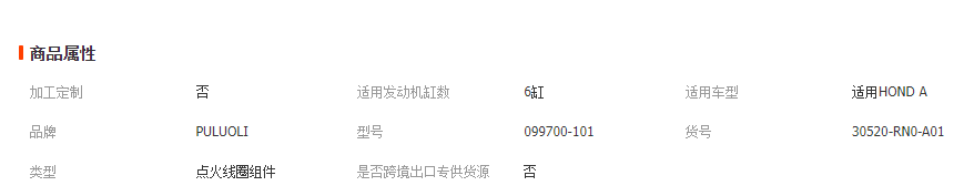 >產(chǎn)品供應> HVAC汽車>發(fā)動機系統(tǒng)>點火線圈>30520-RN0-A01 適用于本田謳歌汽車高壓包 點火線圈 099700-101 主營 互聯(lián)網(wǎng)銷售(除銷售需要許可的商品);汽車零配件批發(fā)