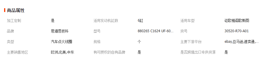 >產(chǎn)品供應> HVAC汽車>發(fā)動機系統(tǒng)>點火線圈>30520-R70-A01適用于本田八代雅閣3.5 08-13年 3.5L點火線圈高壓 主營 互聯(lián)網(wǎng)銷售(除銷售需要許可的商品) 汽車零配件零售 汽車裝飾用品銷