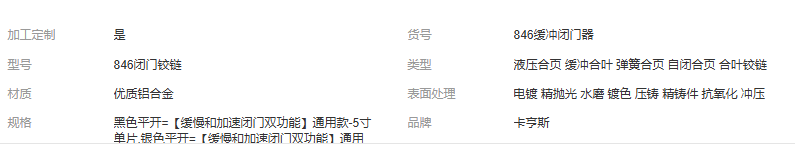 立即發(fā)布求購意向本網(wǎng)頁所展示的有關(guān)【定制隱形門合頁自動關(guān)門閉門器緩沖隱形液壓阻尼彈簧合頁自閉合葉_合頁_肇慶市卡亨斯精密五金有限公司】的信息/圖片/參數(shù)等由全球零部件網(wǎng)的會員【肇慶市卡亨斯精密五金有限公司】提供,由全球零部件網(wǎng)會員【肇慶市卡亨斯精密五金有限公司】自行對信息/圖片/參數(shù)等的真實性、準(zhǔn)確性和合法性負(fù)責(zé),本平臺(本網(wǎng)站)僅提供展示服務(wù),請謹(jǐn)慎交易,因交易而產(chǎn)生的法律關(guān)系及法律糾紛由您自行協(xié)商解決,本平臺(本網(wǎng)站)對此不承擔(dān)任何責(zé)任。您在本網(wǎng)頁可以瀏覽【定制隱形門合頁自動關(guān)門閉門器緩沖隱形液壓阻尼彈簧合頁自閉合葉_合頁_肇慶市卡亨斯精密五金有限公司】有關(guān)的信息/圖片/價格等及提供【定制隱形門合頁自動關(guān)門閉門器緩沖隱形液壓阻尼彈簧合頁自閉合葉_合頁_肇慶市卡亨斯精密五金有限公司】的商家公司簡介、聯(lián)系方式等信息。