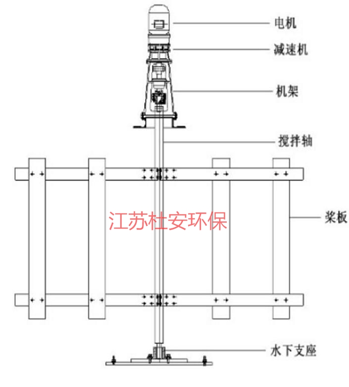 上層槳葉直徑1.5m,距離池底1.5m; 下層槳葉直徑2m,距離池底0.8m。 |